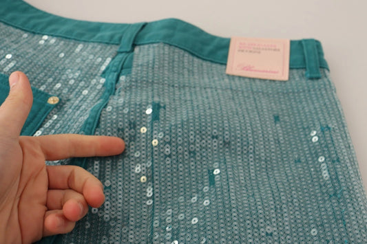 Cadet Blue Sequined Low Waist Cropped Trouser Pants